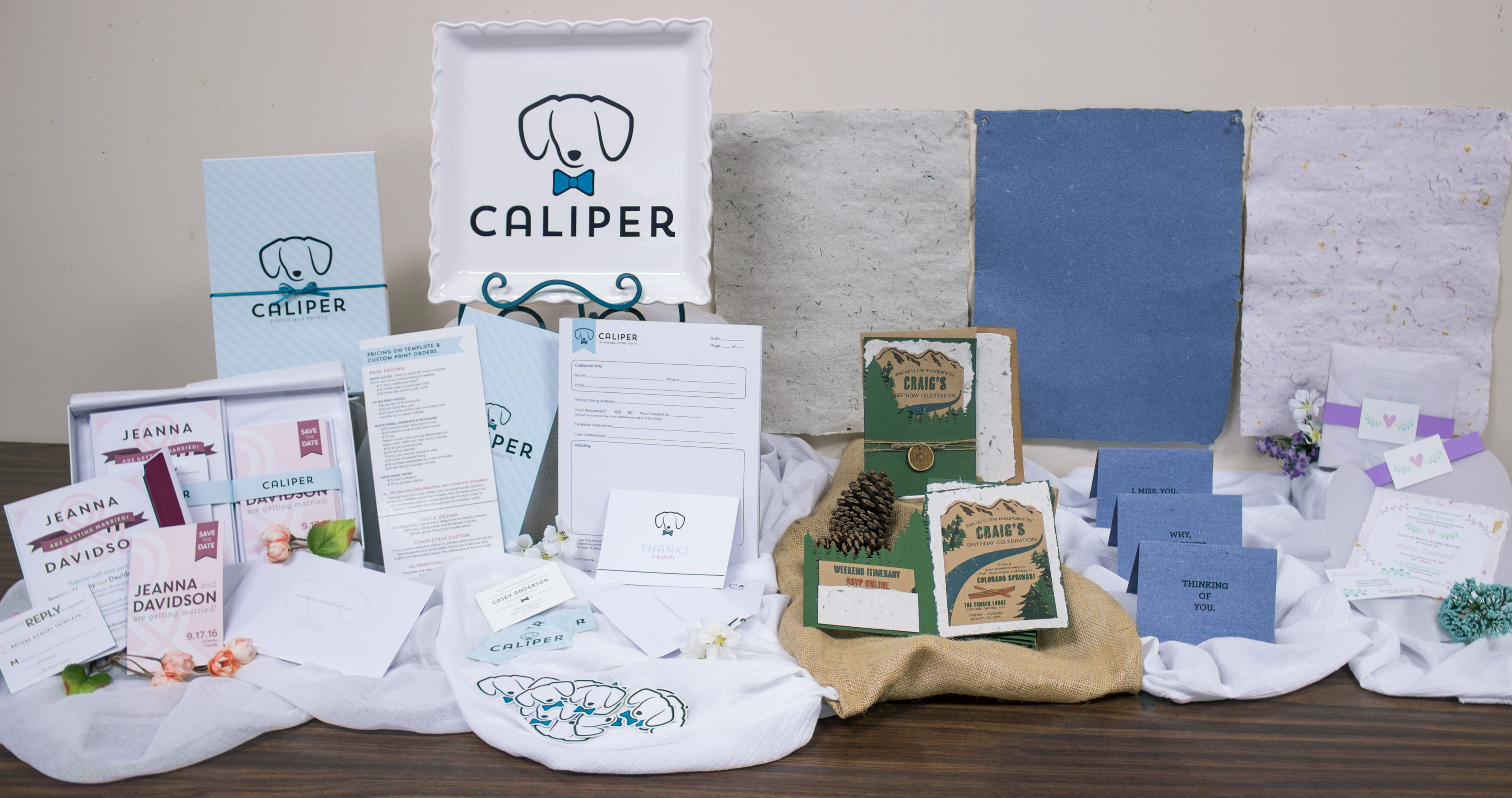 Caliper is a paper company that specializes in custom hand-made recycled paper, invitations, and stationery. All handmade paper was produced by myself from recycled clothing.