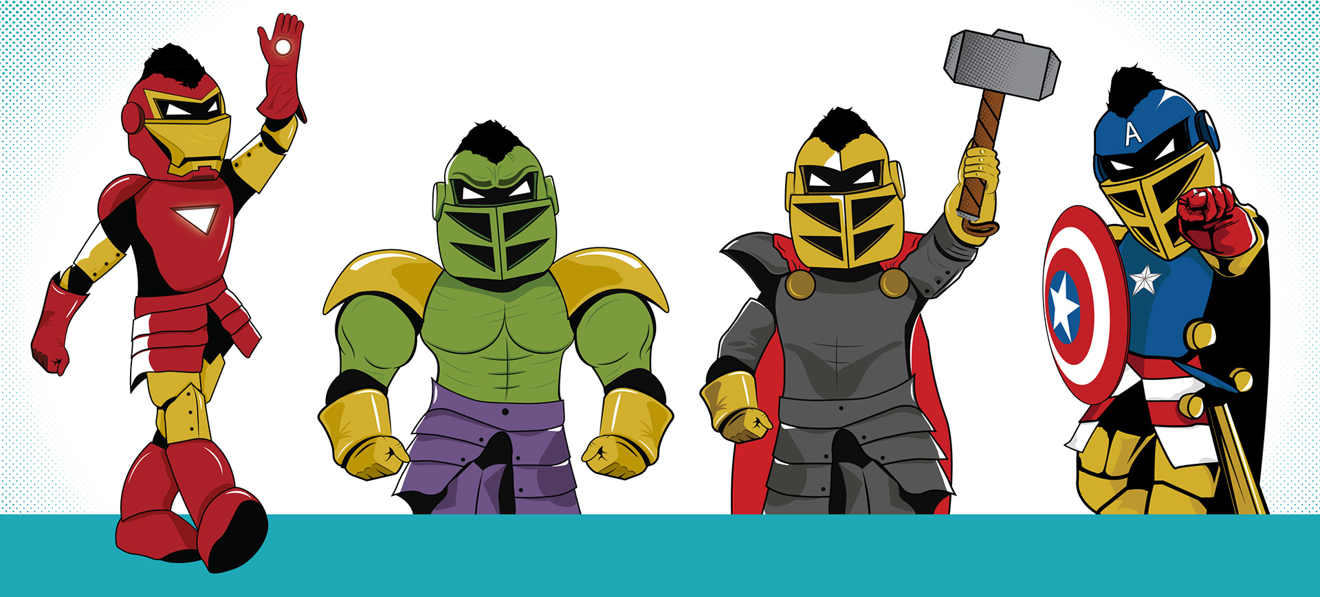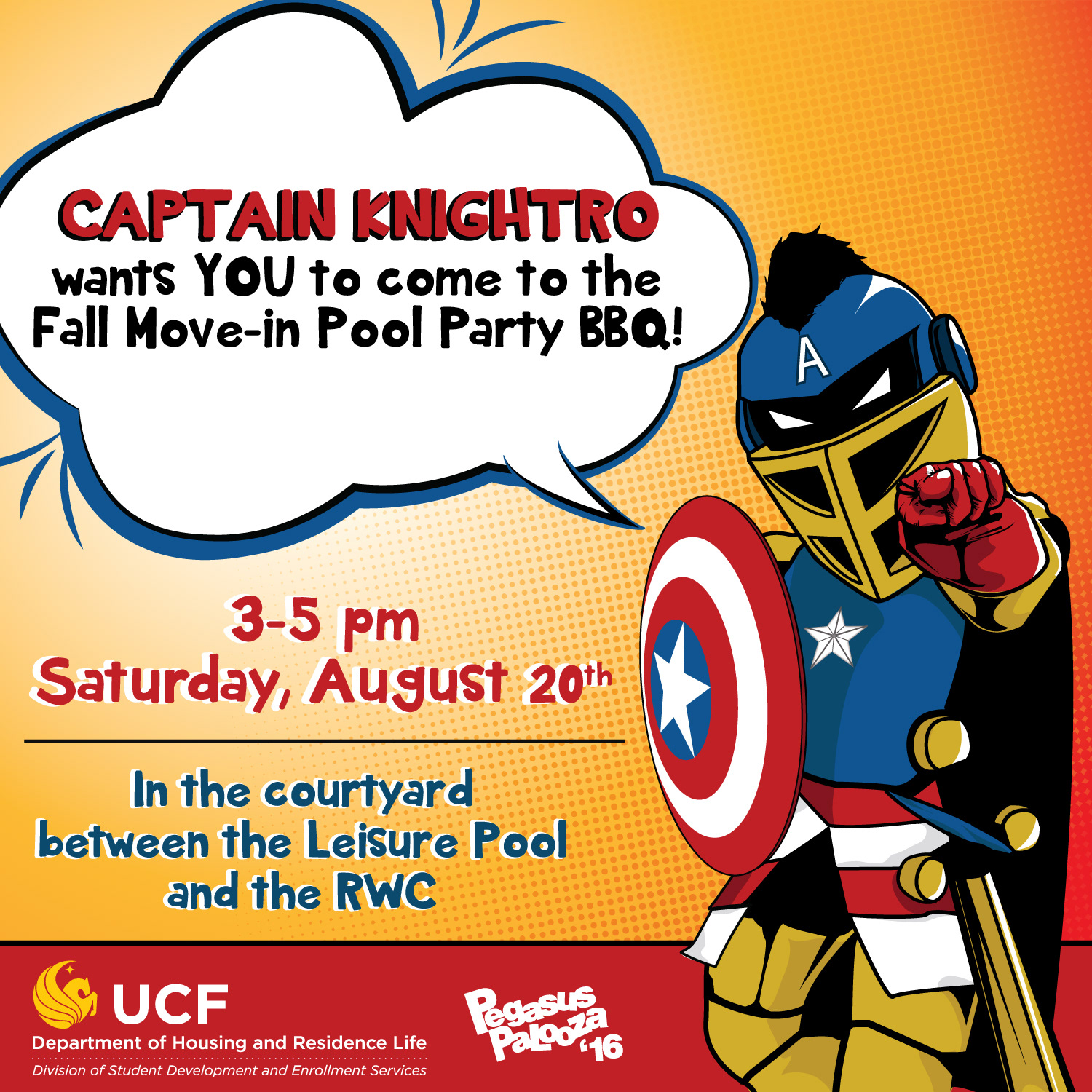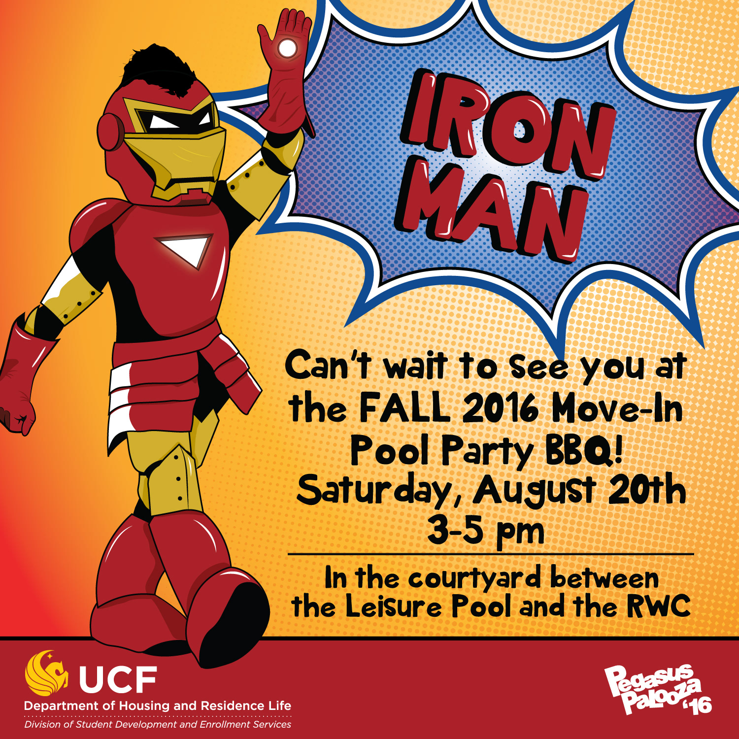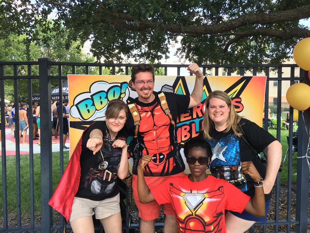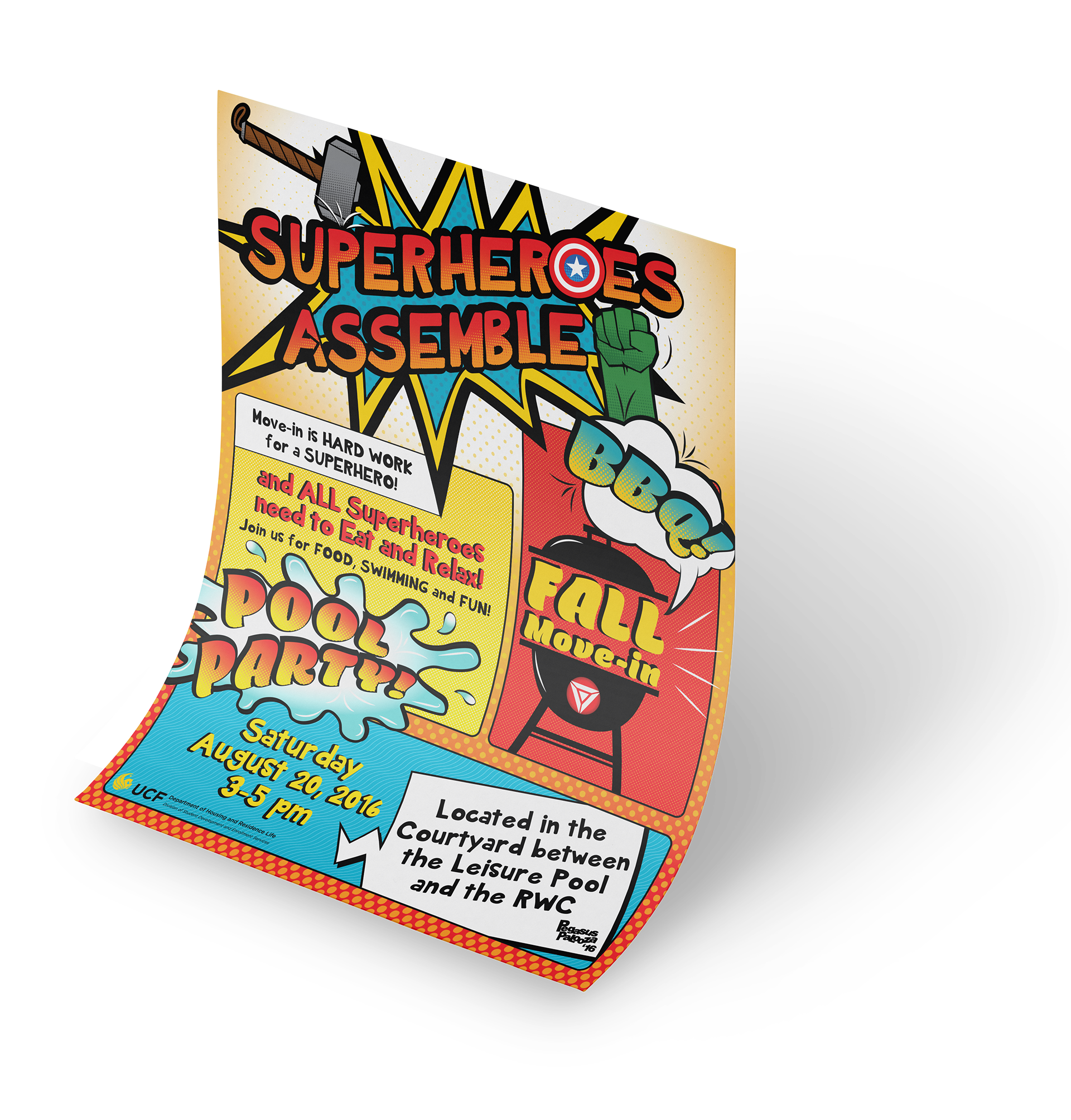 Custom superhero themed event, created to welcome first time in college students and their families, as they finish moving in for their very first semester at college. UCF Mascot, Knightro illustrated as different Avengers brought the event to life.